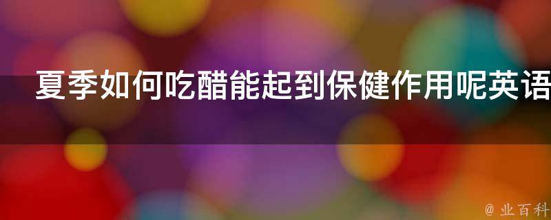 1.夏季如何吃醋能起到保健作用呢英語,醋被人體吸收轉(zhuǎn)化后,對肝臟組織損傷有修復(fù)作用,并可提高肝臟解毒功能,促使酒精從體內(nèi)迅速排出,從而達(dá)到保護(hù)肝臟的目的喝酒時也喝點醋:這樣能降低血液中的酒精濃度,減輕醉酒程度,同時也能減少肝臟損傷。