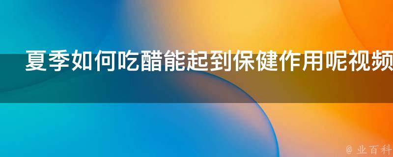 以上就是夏季如何吃醋能起到保健作用呢?,夏季如何吃醋能起到保健作用呢視頻的詳細(xì)內(nèi)容,更多資料請關(guān)注其它相關(guān)教程!